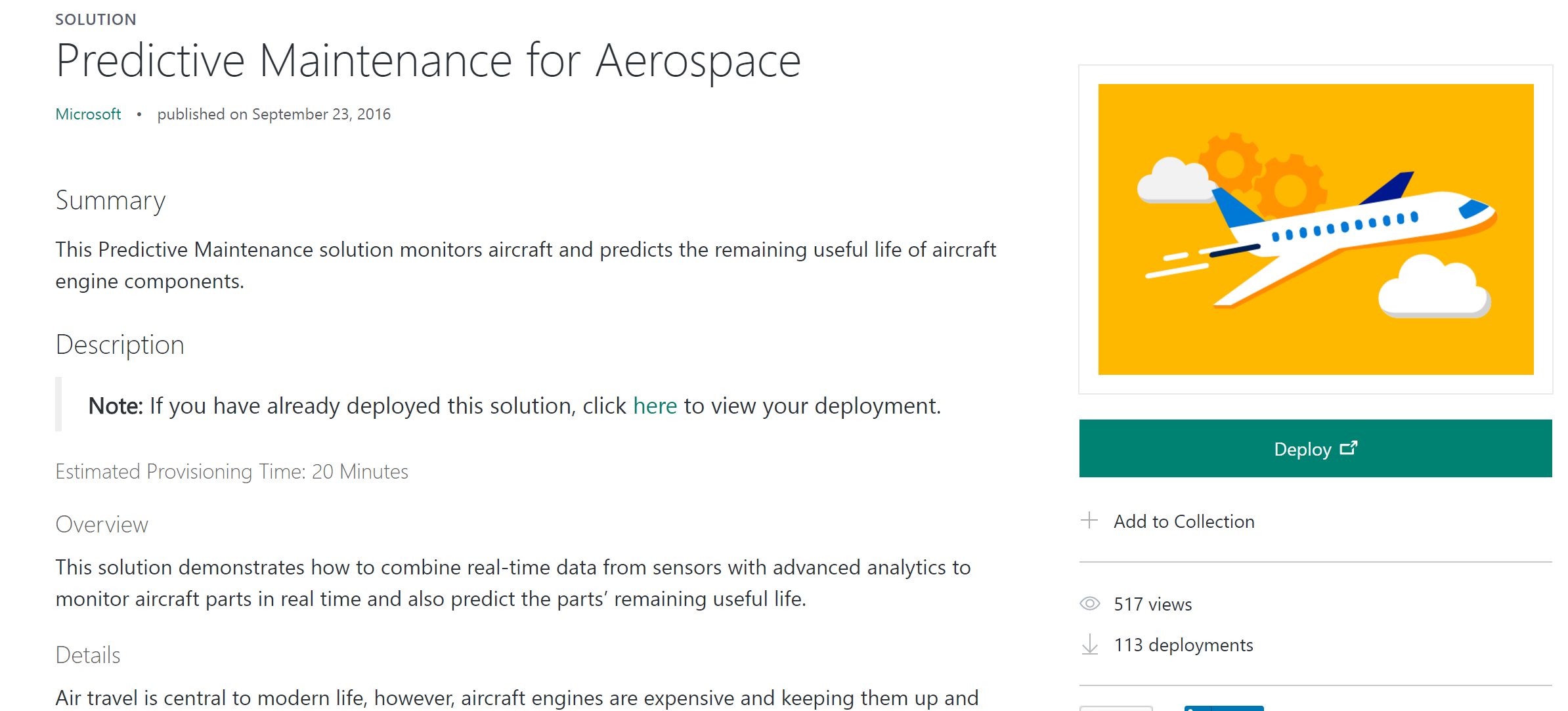 When I click on it I’ll then see a summary of the solution, including the estimated provisioning time: