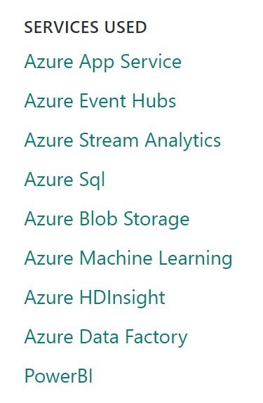 So instead of having to manually go to the Azure web portal and provision many sources, these patterns will do it for you automatically. Think of a pattern as a way to accelerate the process of building an end-to-end demo on top of CIS. A deployed solution will provision your subscription with necessary CIS components (i.e. Event Hub, Stream Analytics, HDInsight, Data Factory, Machine Learning, etc.) and build the relationships between them.