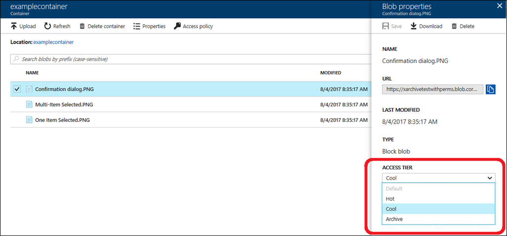 Last year Microsoft introduced Azure Cool Blob storage, which cost customers a penny per GB per month in some Azure regions. Now, users have another, lower-cost option in Azure Archive Blob Storage, along with new Blob-Level Tiering data lifecycle management capabilities. So there are now three Azure blog storage tiers: Hot, Cool, and Archive (see Azure Blob storage: Hot, cool, and archive storage tiers).
